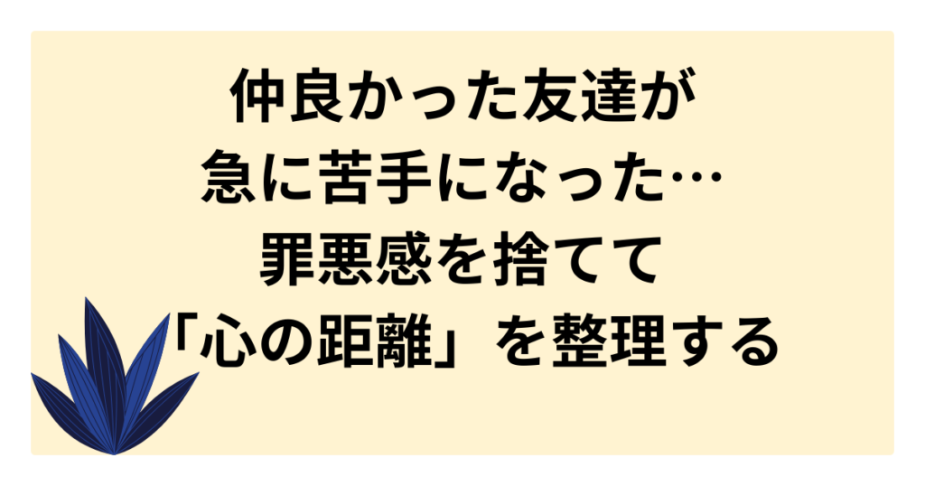 仲良かった友達が急に苦手になった…罪悪感を捨てて「心の距離」を整理するための完全ガイド
