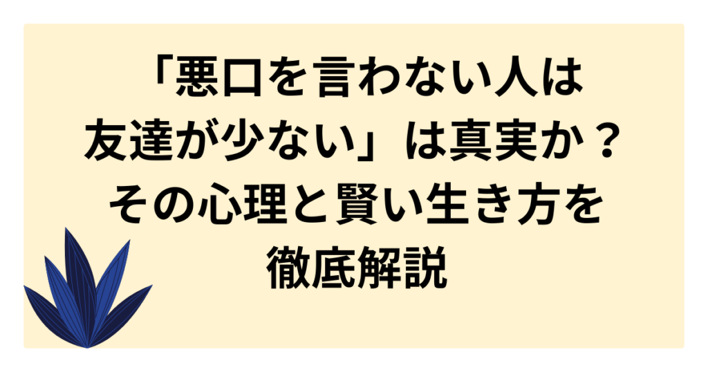 「悪口を言わない人は友達が少ない」は真実か?その心理と賢い生き方を徹底解説