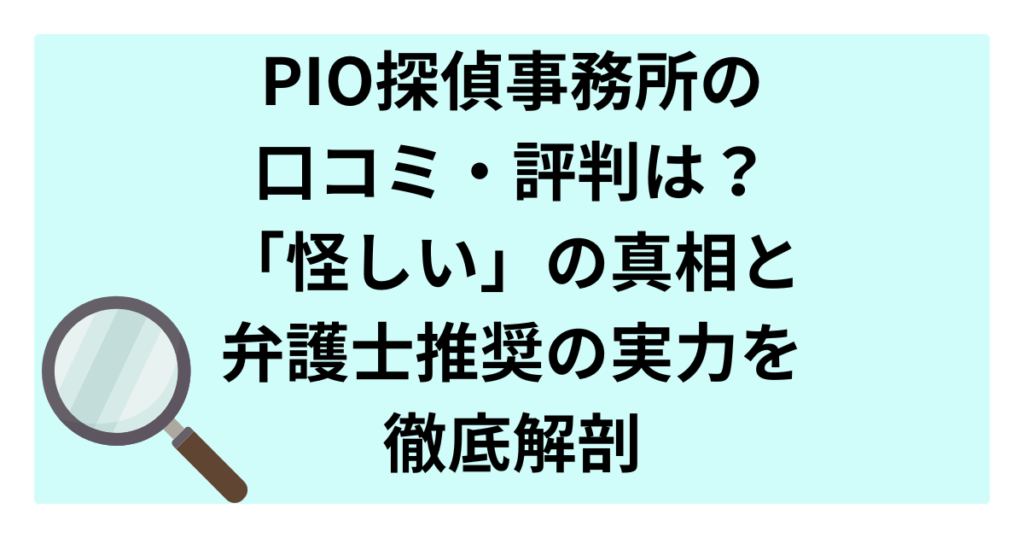 PIO探偵事務所の口コミ・評判は?「怪しい」の真相と弁護士推奨の実力を徹底解剖