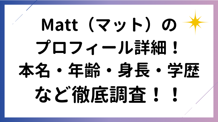 Matt(マット)のプロフィール詳細!本名・年齢・身長・学歴や父・桑田真澄との家族関係と経歴を徹底解説