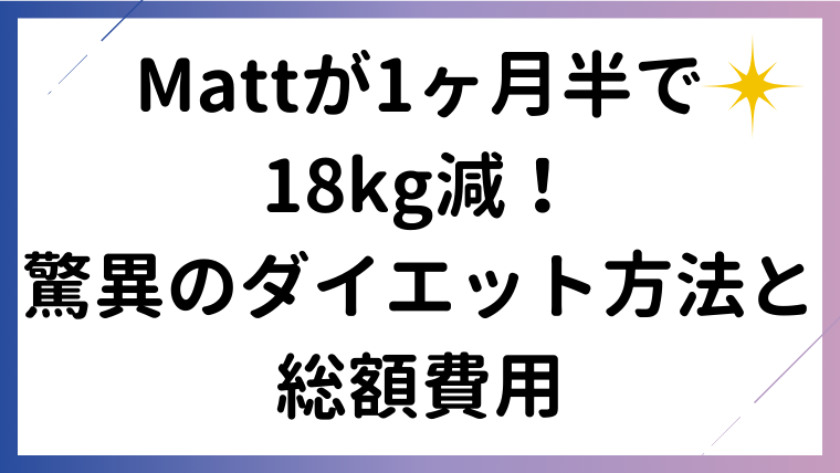 Mattが1ヶ月半で18kg減!驚異のダイエット方法と総額費用、身長183cmの現在体重まで徹底解説