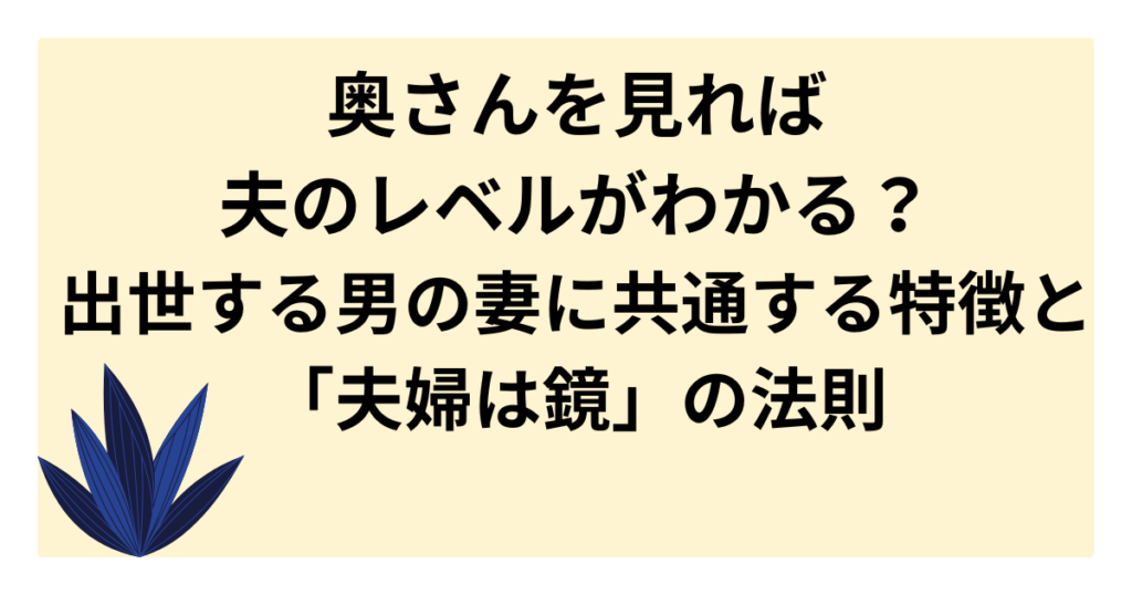 「奥さんを見れば夫がわかる」という言葉は真実です。 出世する男の妻には共通する「あげまん」の特徴があり、逆に妻を見れば夫の人間性や家庭環境まで透けて見えます。 本記事では、成功者の妻の共通点や、夫婦が似てくる心理的理由、そして今日からでき... -