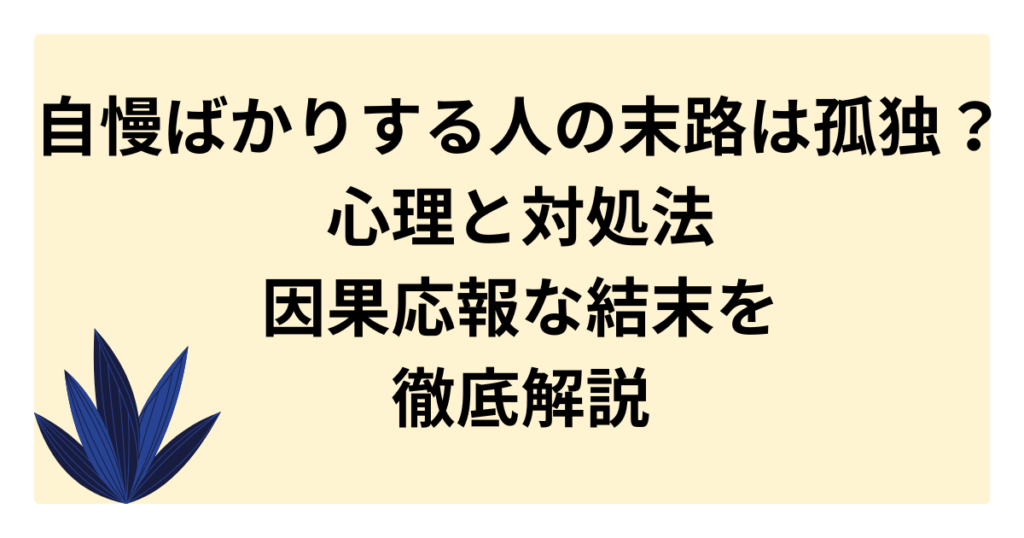 会えば自分の自慢話ばかりする人にうんざりしていませんか? 彼らが迎える悲惨な末路、その裏にある強烈な劣等感や承認欲求などの心理、そしてストレスを溜めない賢い対処法までを網羅的に解説。 因果応報の真実を知り、人間関係の悩みを解消しましょう。 ... -