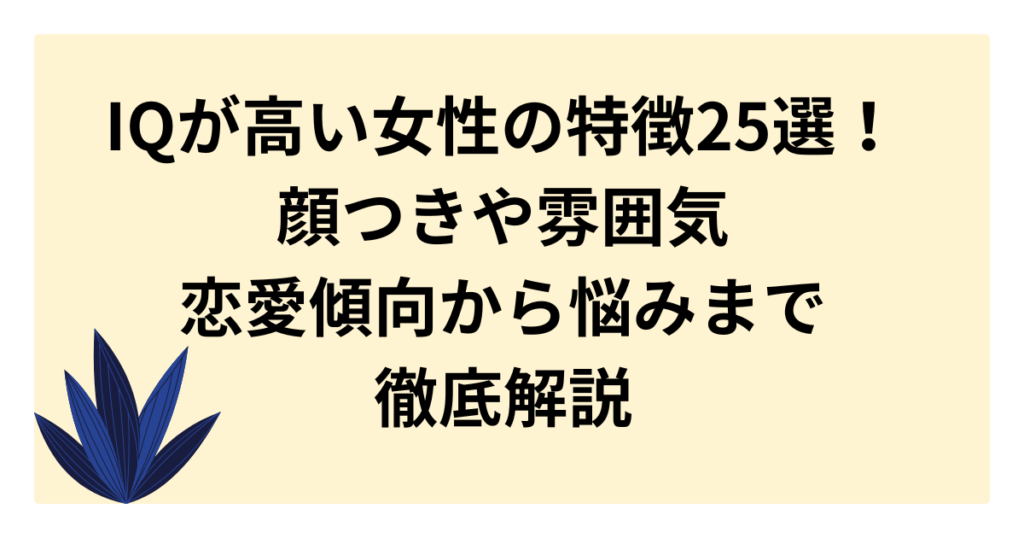 IQが高い女性には独特の雰囲気や共通する特徴があります。 頭の回転が速すぎるゆえの会話のズレや、恋愛・仕事での悩み、そして「冷たい」と誤解されがちな性格の真実とは? 本記事では、IQが高い女性の顔つきや行動パターン、向いている職業、上手な付き... -