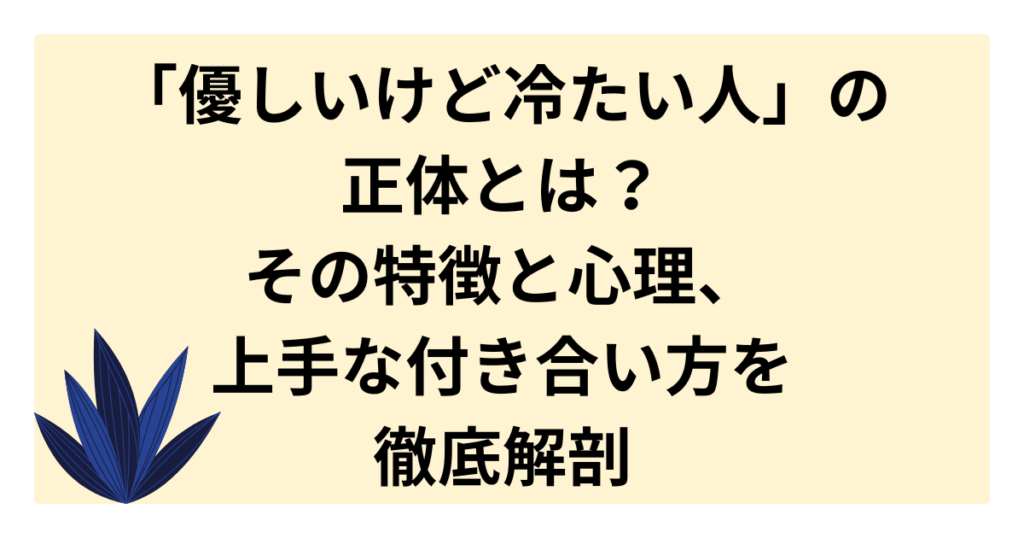「いつもニコニコしているのに、どこか壁を感じる」「親切だけど、他人に興味がなさそう」。 そんな「優しいけど冷たい人」の正体とは?彼らに共通する特徴や行動パターン、その裏にある合理的な心理、そして恋愛や仕事での傾向までを徹底的に解説します。... -