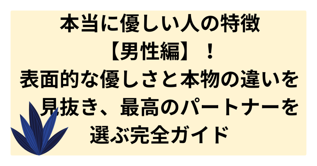 本当に優しい人の特徴【男性編】!表面的な優しさと本物の違いを見抜き、最高のパートナーを選ぶ完全ガイド