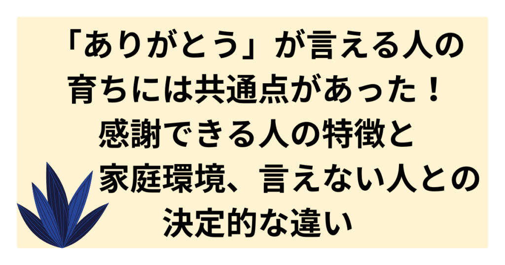 「ありがとう」が自然に言える人は、どのような育ちをしてきたのでしょうか? その背景には、親の行動や家庭環境が深く関係しています。本記事では、感謝できる人の特徴や心理、育ちの共通点を徹底解説。 逆に「ありがとう」が言えない人の心理や、大人に... -