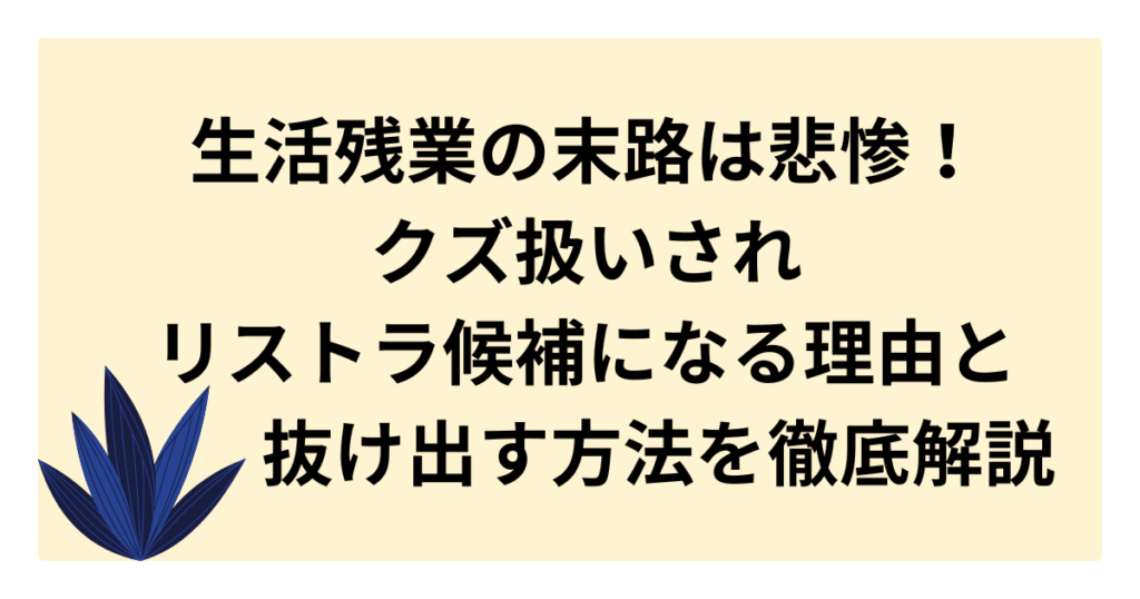 生活残業の末路は悲惨!クズ扱いされリストラ候補になる理由と抜け出す方法を徹底解説