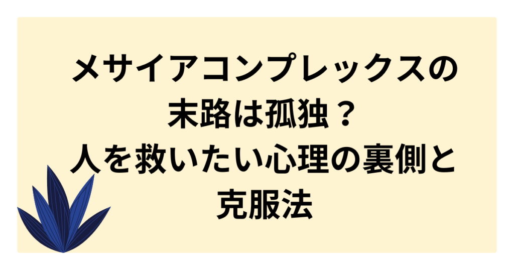 メサイアコンプレックスの末路は孤独?人を救いたい心理の裏側と克服法