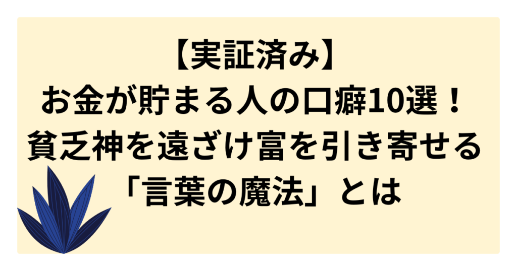 【実証済み】お金が貯まる人の口癖10選!貧乏神を遠ざけ富を引き寄せる「言葉の魔法」とは