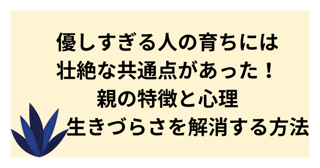 優しすぎる人の性格は、実は幼少期の「育ち」や家庭環境に深く関係しています。 本記事では、過剰に優しくなってしまう人に共通する親の特徴や心理メカニズム、彼らが抱える生きづらさとその末路までを徹底解説。 さらに、自分軸を取り戻し、都合のいい人... -