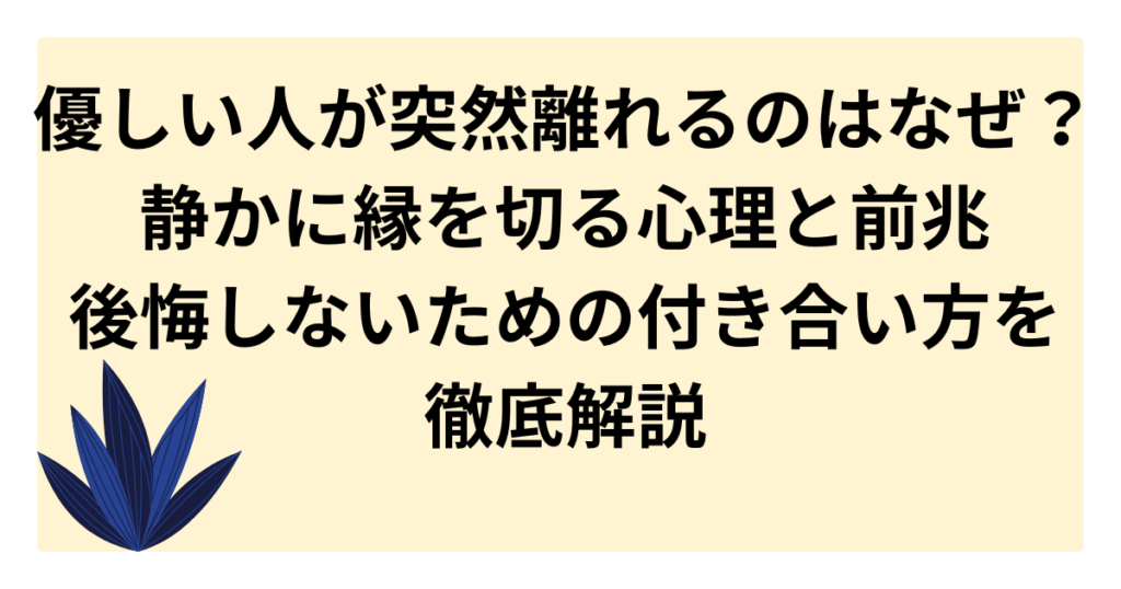 優しい人が突然離れるのはなぜ?静かに縁を切る心理と前兆、後悔しないための付き合い方を徹底解説