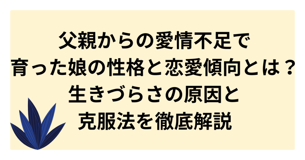 父親からの愛情不足で育った女性には、自己肯定感の低さや恋愛依存、男性不信といった共通の特徴があります。 本記事では、父親との関係が娘の人格形成に与える深刻な影響や、大人になってから現れる性格・恋愛の癖、そして長年の苦しみから解放され、幸せ... -