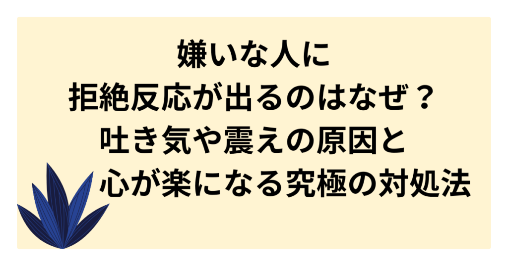 嫌いな人に会うと吐き気や震え、動悸が止まらない…。 それは心と体が発する限界のサインかもしれません。 本記事では、特定の相手に拒絶反応が出る心理的・身体的な原因から、HSPとの関連性、スピリチュアルな意味、そして今すぐできる具体的な対処法まで... -