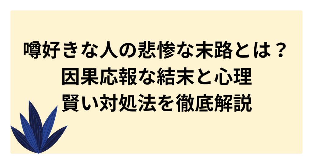 噂好きな人が迎える末路は、孤独と信用の喪失という悲惨なものです。 なぜ彼らは噂を流すのか?その歪んだ心理や特徴、スピリチュアルな視点からの因果応報、そしてターゲットにされた時の賢い対処法まで徹底的に解説します。 職場やママ友、親戚の集まり... -