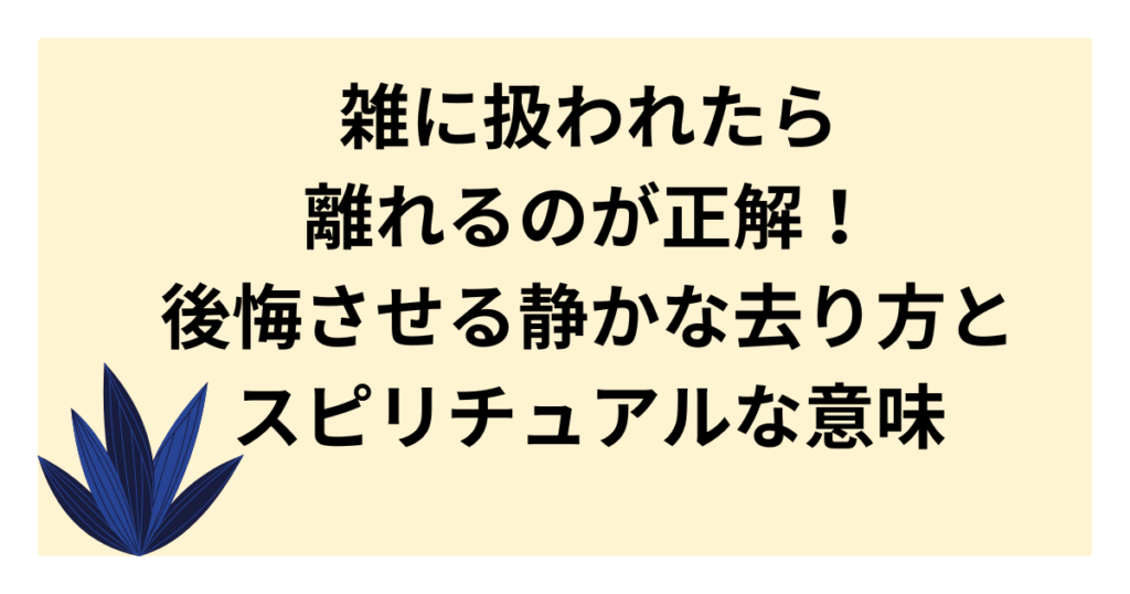 雑に扱われたら、怒るよりも「静かに離れる」ことが最強の対処法です。 なぜ相手はあなたを粗末にするのか?その心理やスピリチュアルな意味、そして相手に後悔させ、あなたが幸せになるための具体的な「去り方」を徹底解説します。 大切に思っていた相手... -