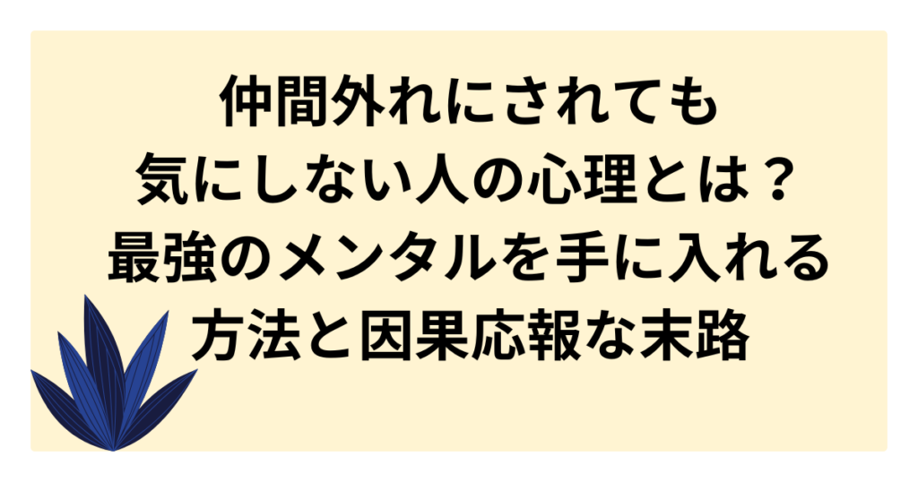 仲間外れにされても気にしない人には共通する心理的特徴があります。 彼らがなぜ平気なのか、その強靭なメンタルの秘密を解明。 仲間外れにする人の幼稚な心理や悲惨な末路、そしてあなたが今日から実践できる「気にしない技術」とストレスフリーな生き方... -