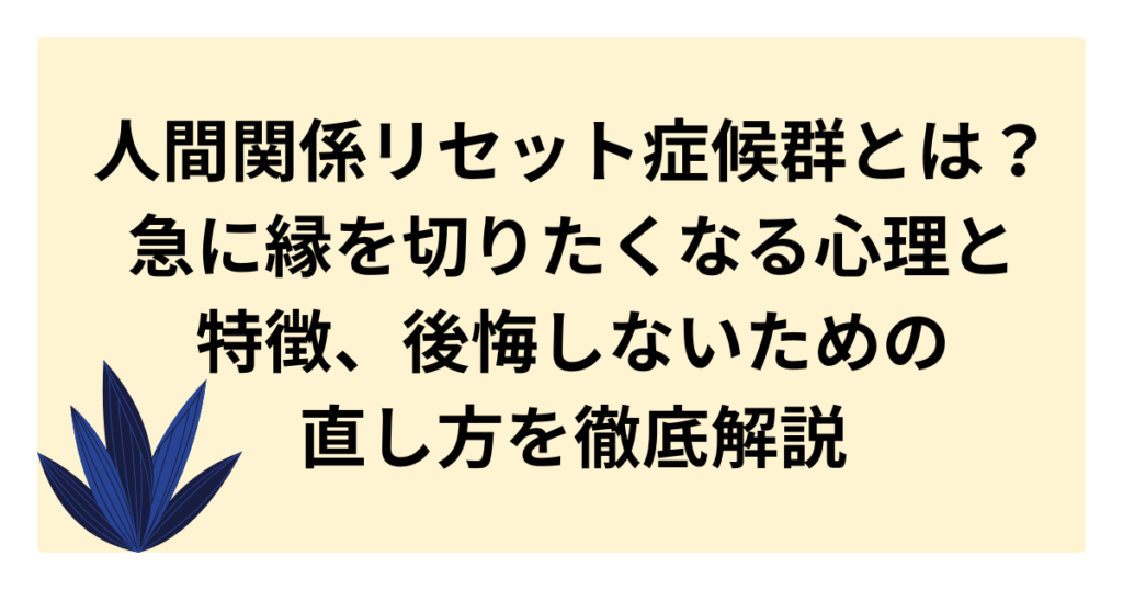人間関係リセット症候群とは?急に縁を切りたくなる心理と特徴、後悔しないための直し方を徹底解説