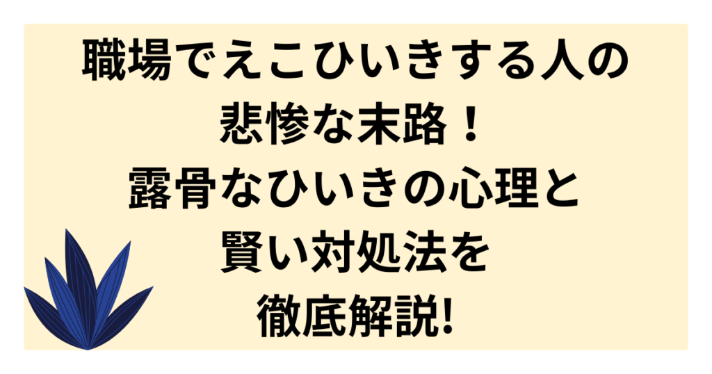 職場で特定の社員ばかりをえこひいきする上司やお局に悩んでいませんか? 露骨にお気に入りを優遇する人の心理や、彼らが最終的に迎える自滅的な末路を徹底解説します。 えこひいきされる人・されない人の特徴から、不当な扱いに振り回されずに自分を守る... -