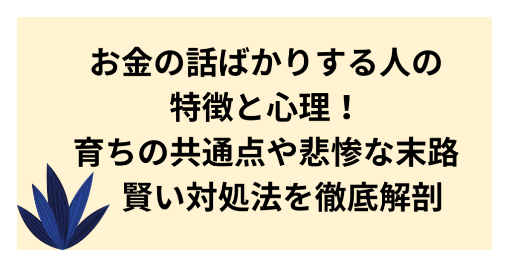 「いくら稼いでる?」「これ高かったでしょ?」とお金の話ばかりする人にうんざりしていませんか? 本記事では、お金の話しかできない人の心理や特徴、育ちの背景を徹底解剖。彼らが迎える孤独な末路や、職場や友人関係での賢い対処法、自分が嫌われないた...