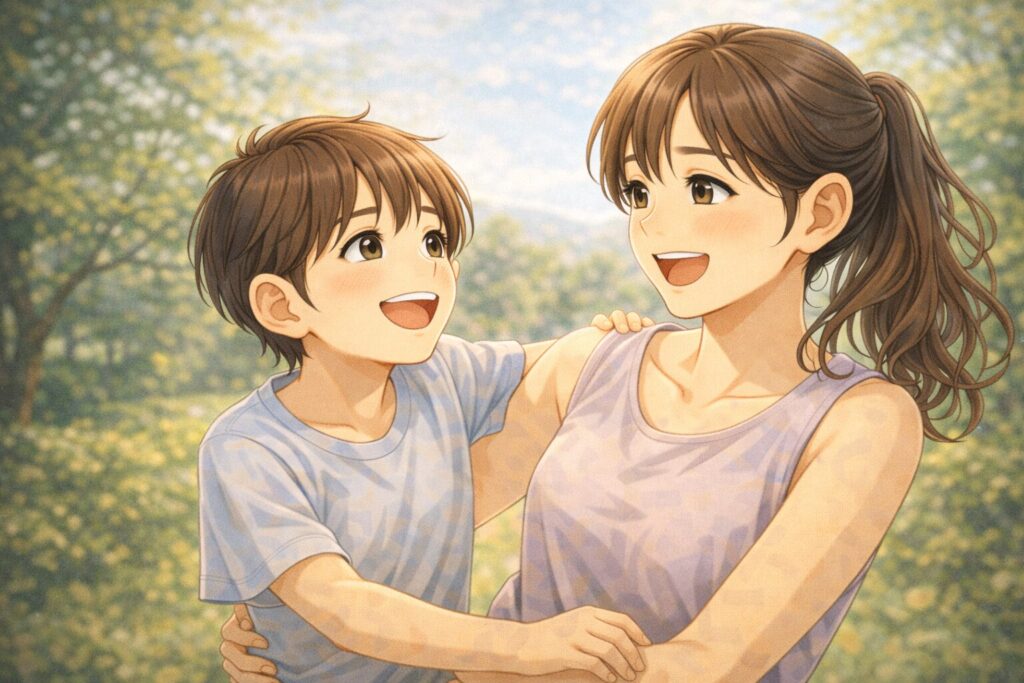 親や親戚の前では、甲斐甲斐しく手伝いをしたり、妹を気遣うような言葉をかけたりして、「しっかり者の優しいお姉ちゃん」を完璧に演じます。