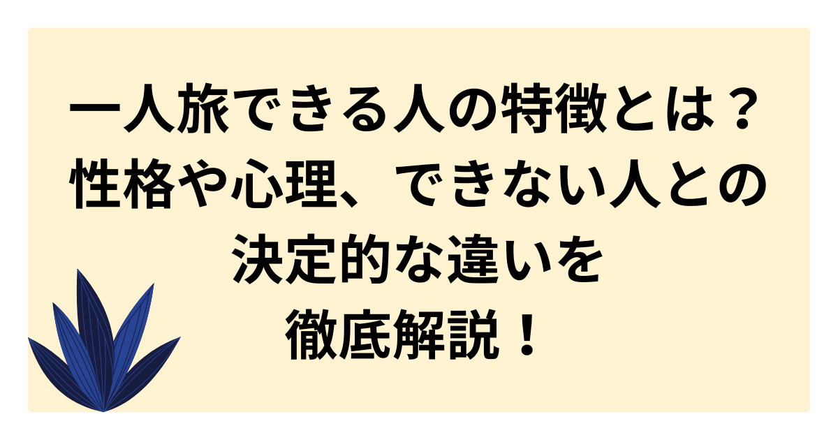 自立心や好奇心、マイペースといった性格・心理から、一人旅できない人との決定的な違い、一人旅がもたらすメリットや始めるためのステップまで、一人旅の魅力を徹底的に解説します。
