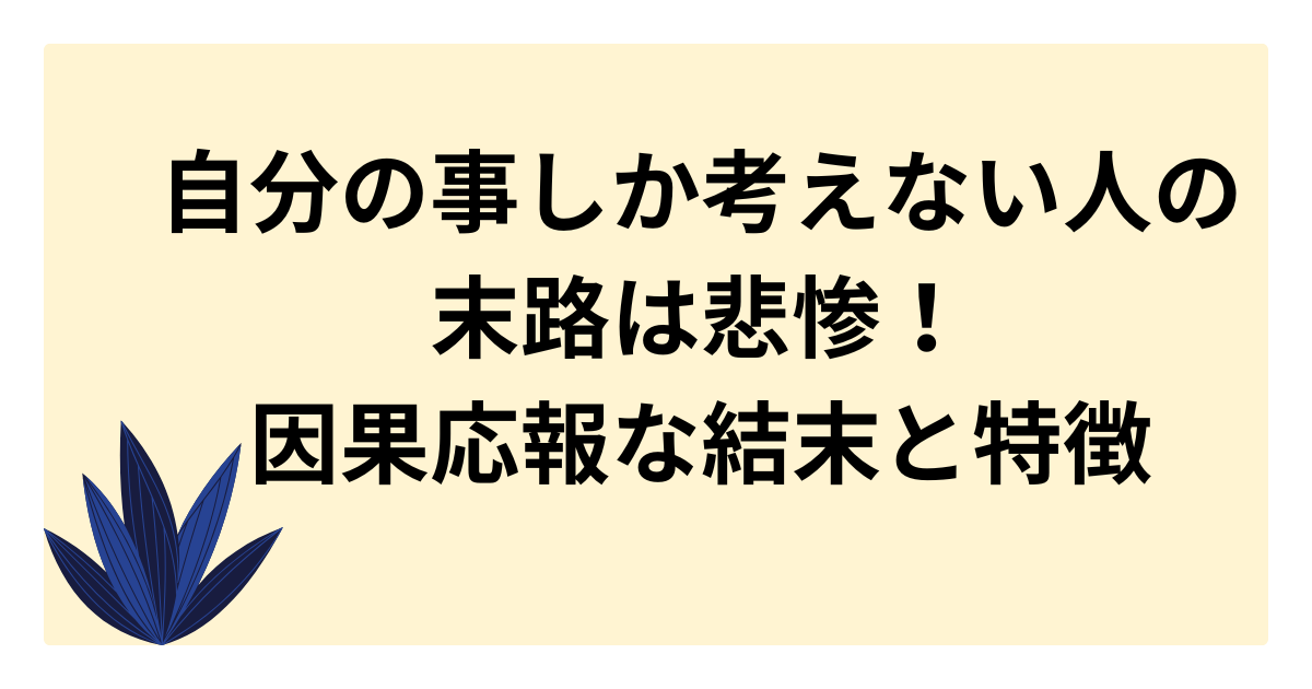 結論から言えば、自分のことしか考えない人の末路は、例外なく悲惨です。