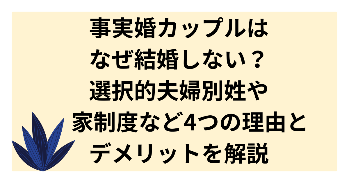 - 事実婚の理由は、夫婦別姓、家制度回避、対等性の重視など。