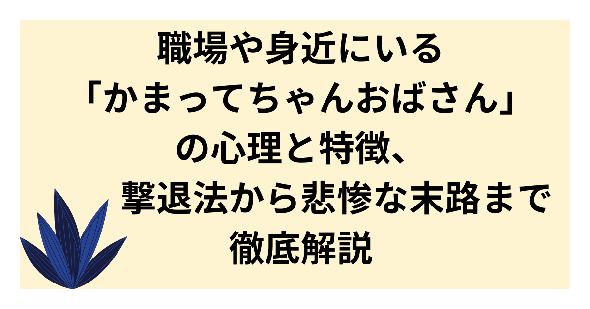 この記事を読めば、かまってちゃんおばさんへのイライラが「哀れみ」に変わり、冷静に対処できるようになるはずです。