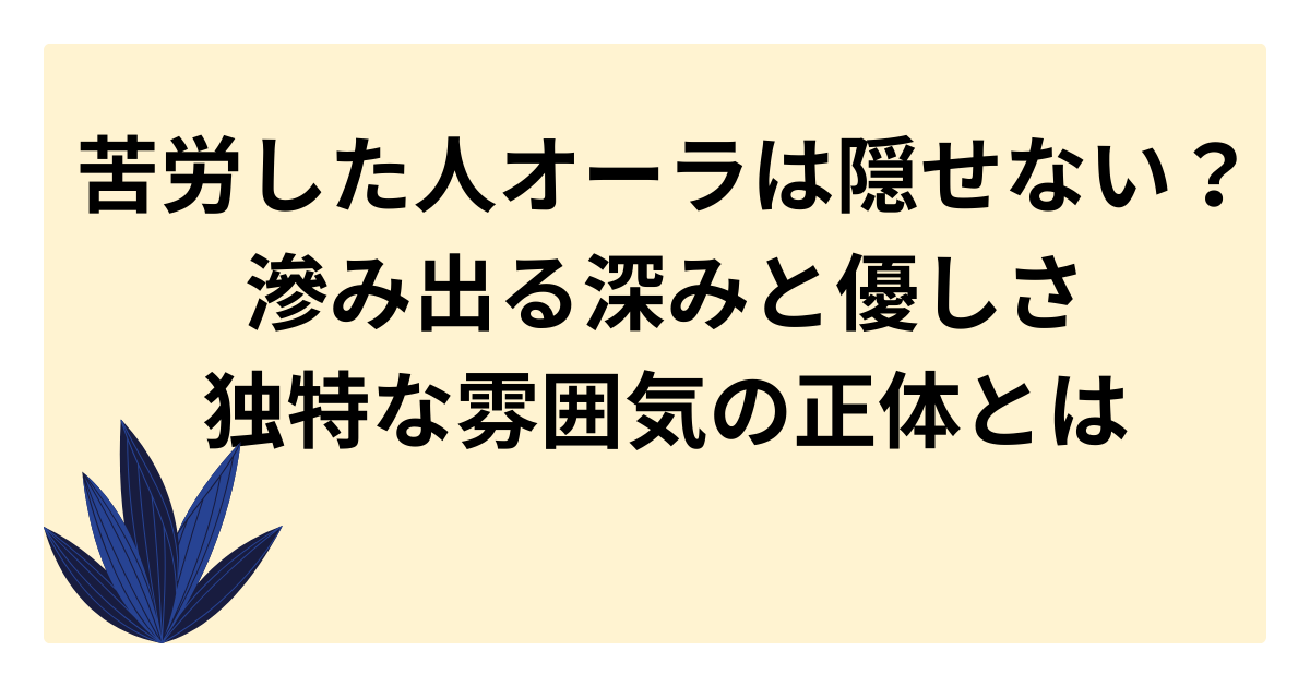 本記事では、競合する数多の情報を徹底的に分析・統合し、「苦労した人オーラ」の正体を解き明かします。