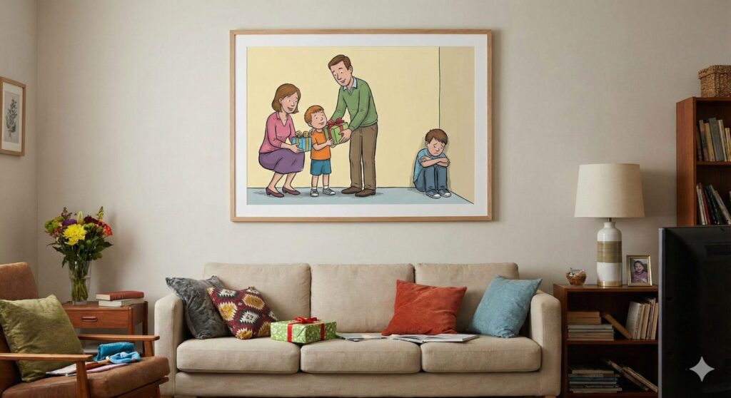• 評価の格差:同じテストの点数を取っても、一方は「よく頑張った」と褒められ、もう一方は「もっと取れたはずだ」と叱責される。あるいは、成果を上げても無視される一方で、愛玩子の些細な成功は大げさに称賛されます。